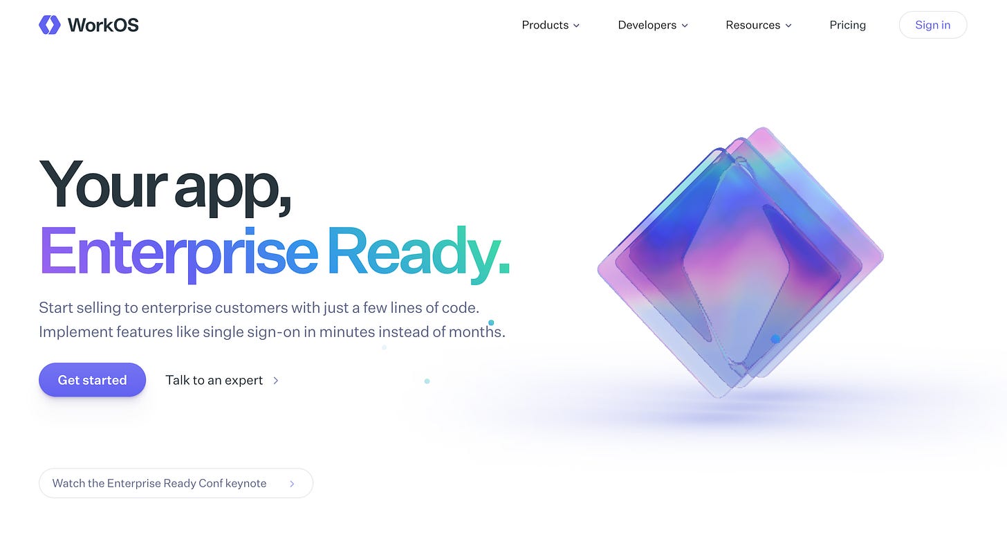 WorkOS. If you are building internal tools for the organization you are working for or your own company, you need enterprise-grade features like single sign-on and user provisioning.