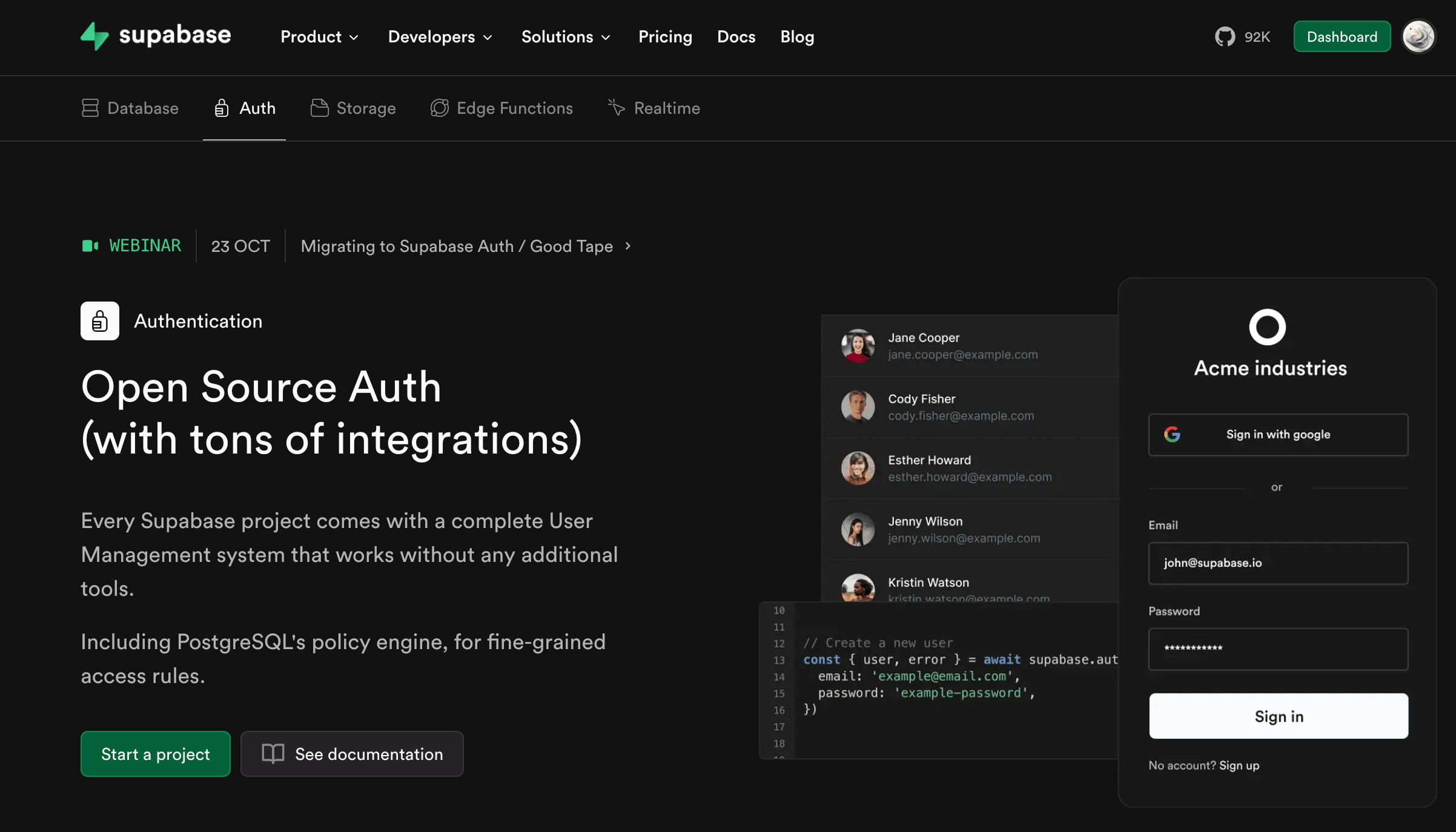 A favourite among the CodeGen platforms across the board. But it also offers a feature for handling authentication and user management.