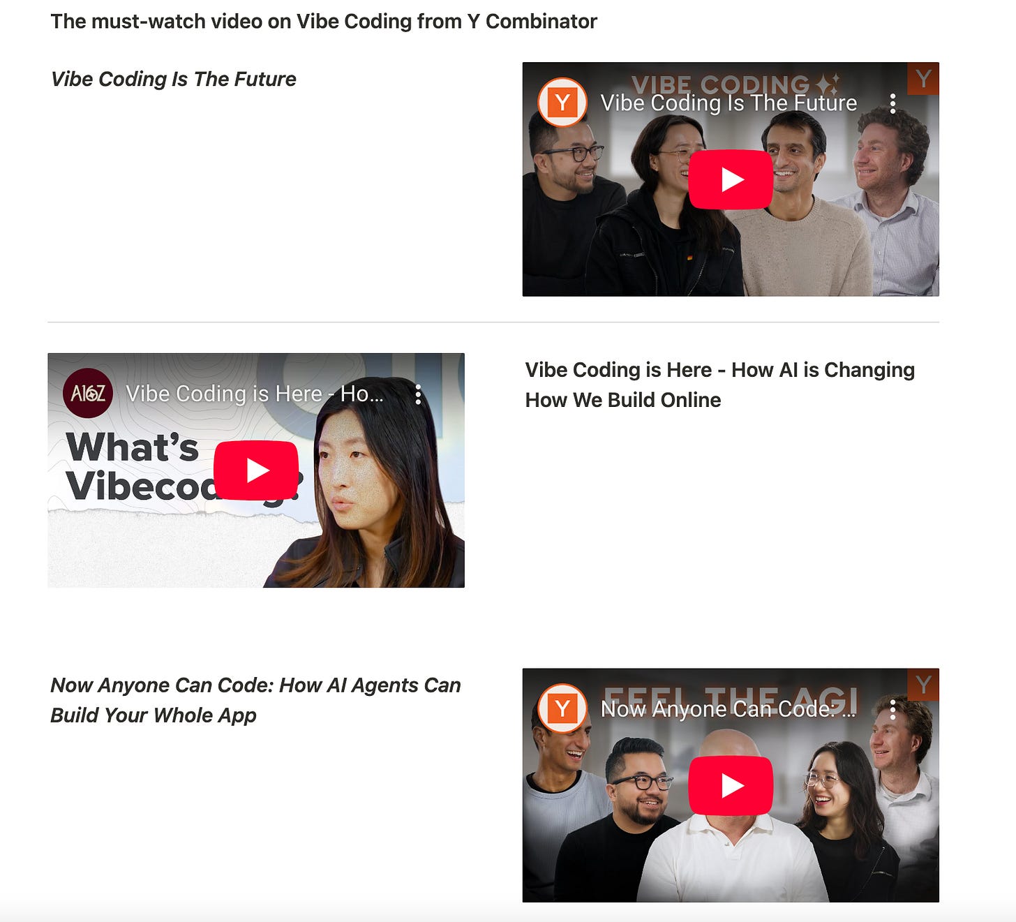 Hand-picked insights from top thinkers in prompting, UI design, software philosophy, AI tools, language modeling, and low-code thinking. Includes original annotations.Vibe Coding Explainers