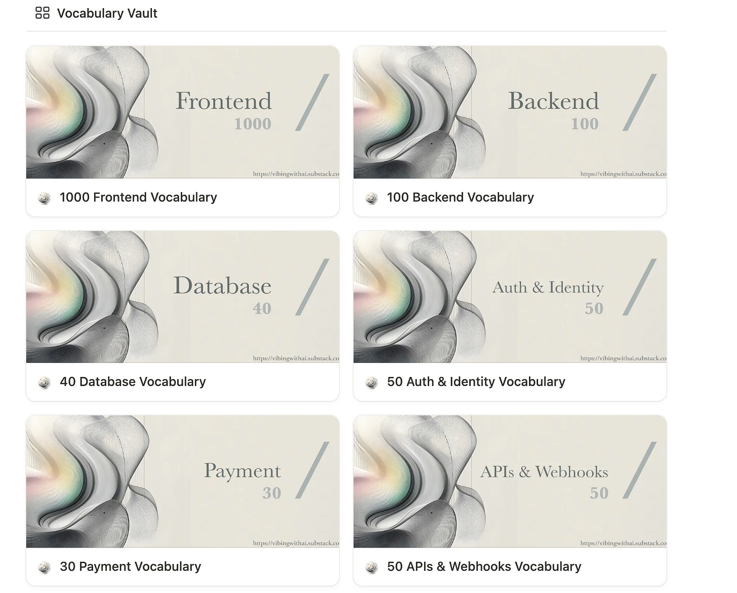 It’s your resource vault to learn the lingo, grasp the scaffolds that make up modern software, and start building with clarity — without writing a line of code.