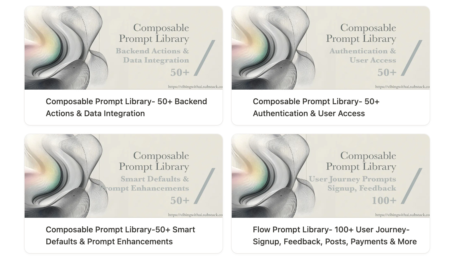Prompt Pack: 120+ prompt templates covering Supabase, Firebase, Airtable, local storage, Neon, and Google Sheets.