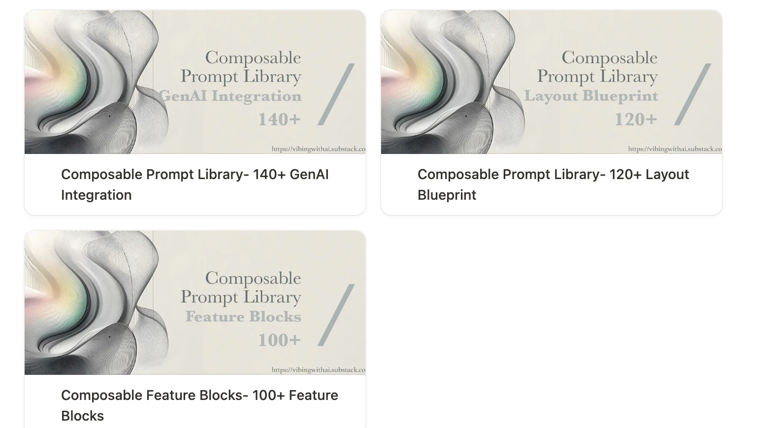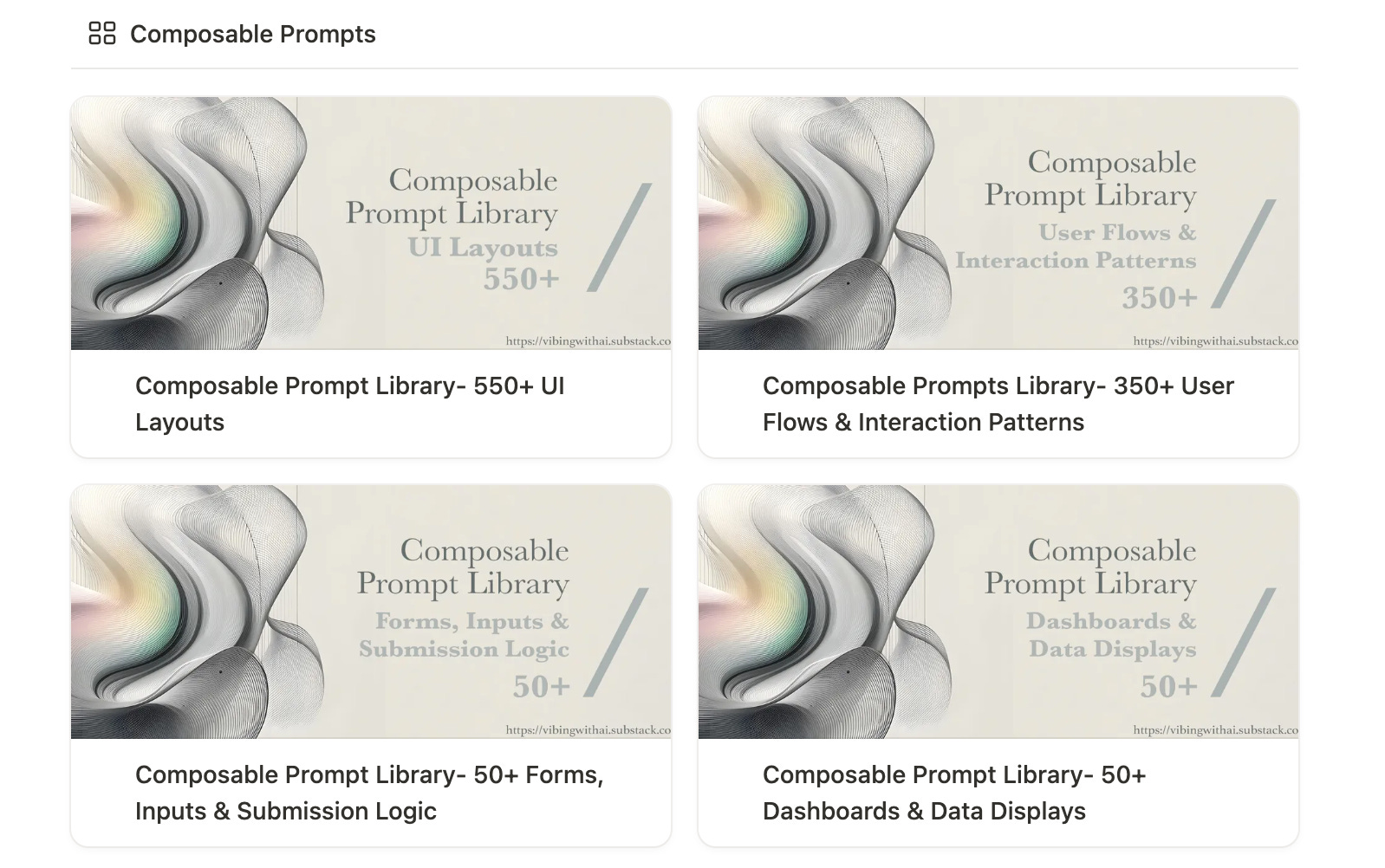 Prompt Pack: 550+ layout zone snippets, including landing page structures, dashboard grids, content sections, and responsive page templates.