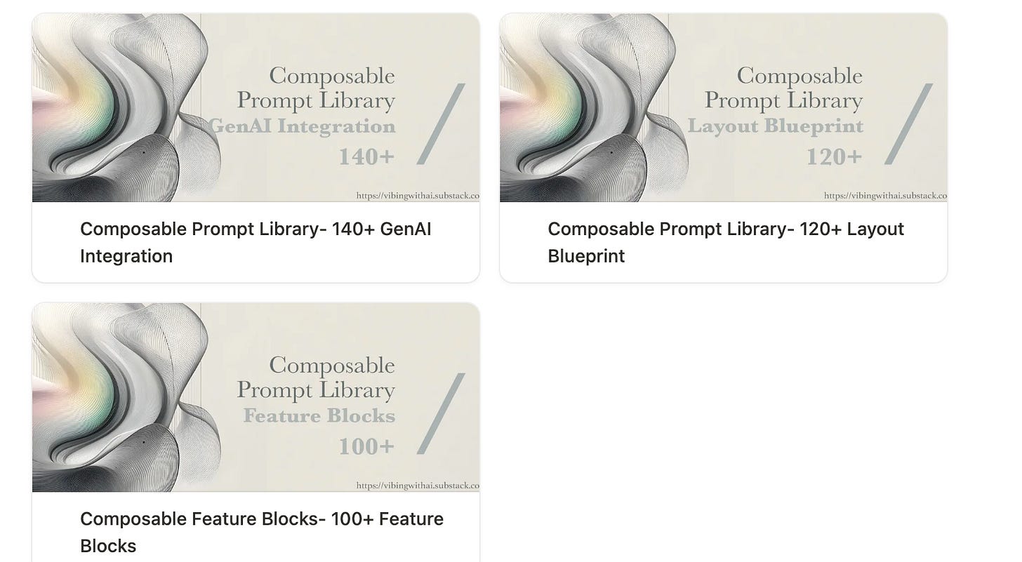 Chat inputs, prompt shaping, image generation, RAG models, audio-to-text, classification tools120+ Layout Blueprint Prompts