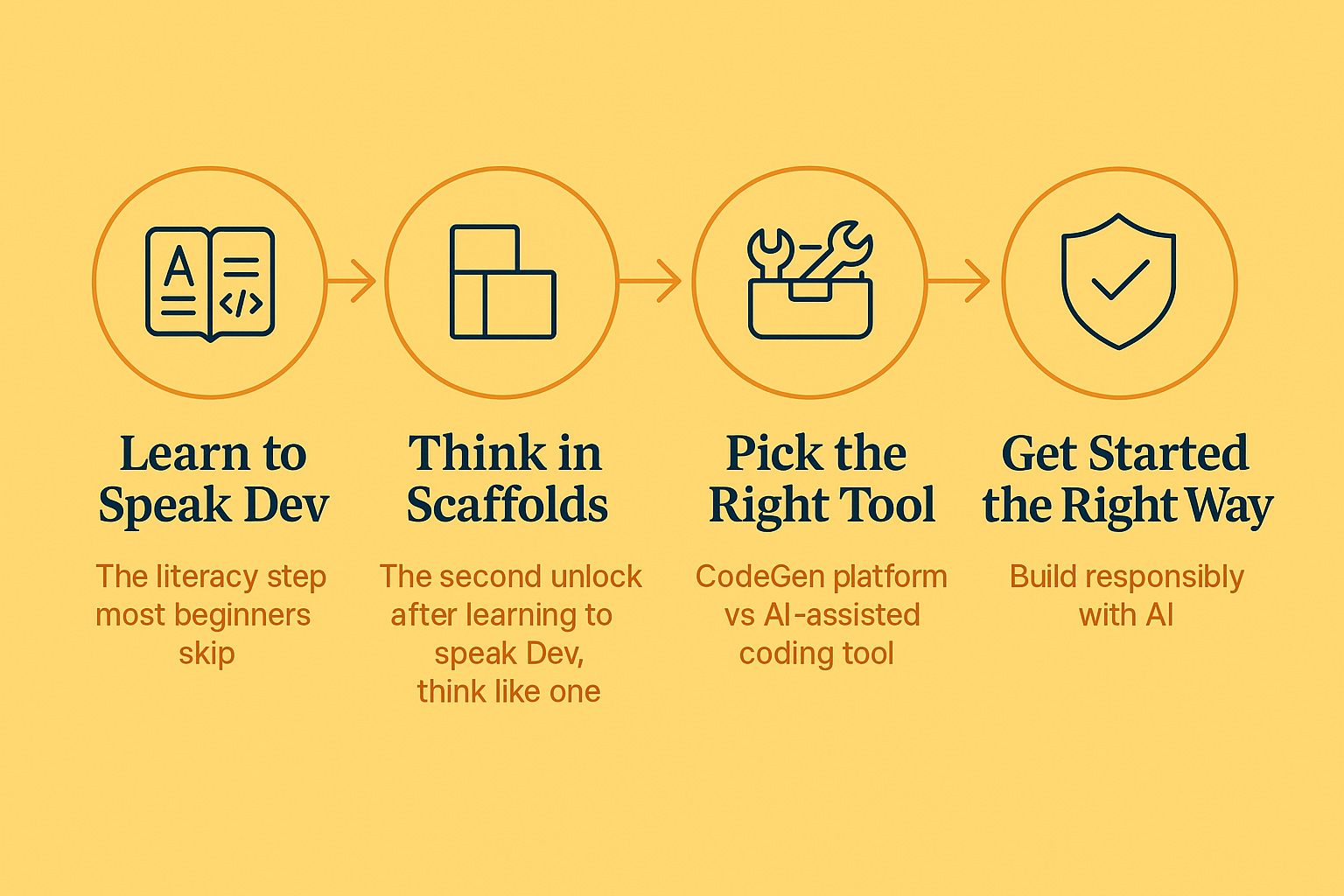 Speak Dev → Think in Scaffolds → Choose the Right Tools → Build.